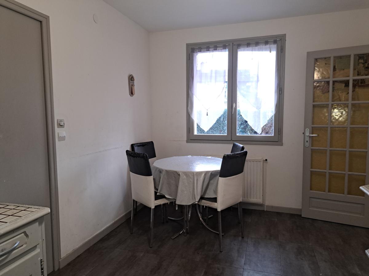 A VENDRE maison des années 80 d’une surface de 106 m² env. comprenant : entrée, toilettes, pièce de vie, cuisine aménagée et équipée, garage avec partie grenier cave sous partie.